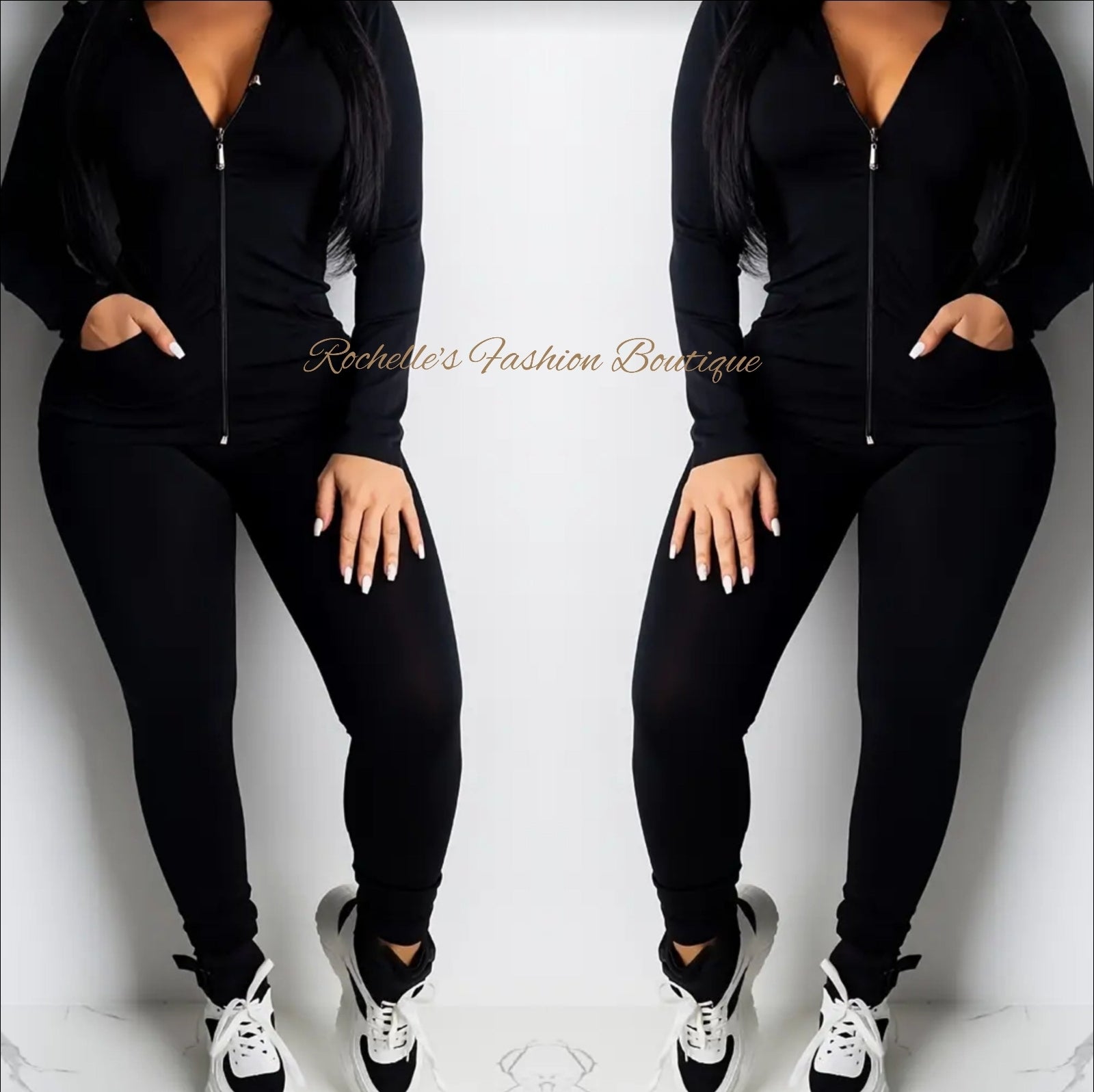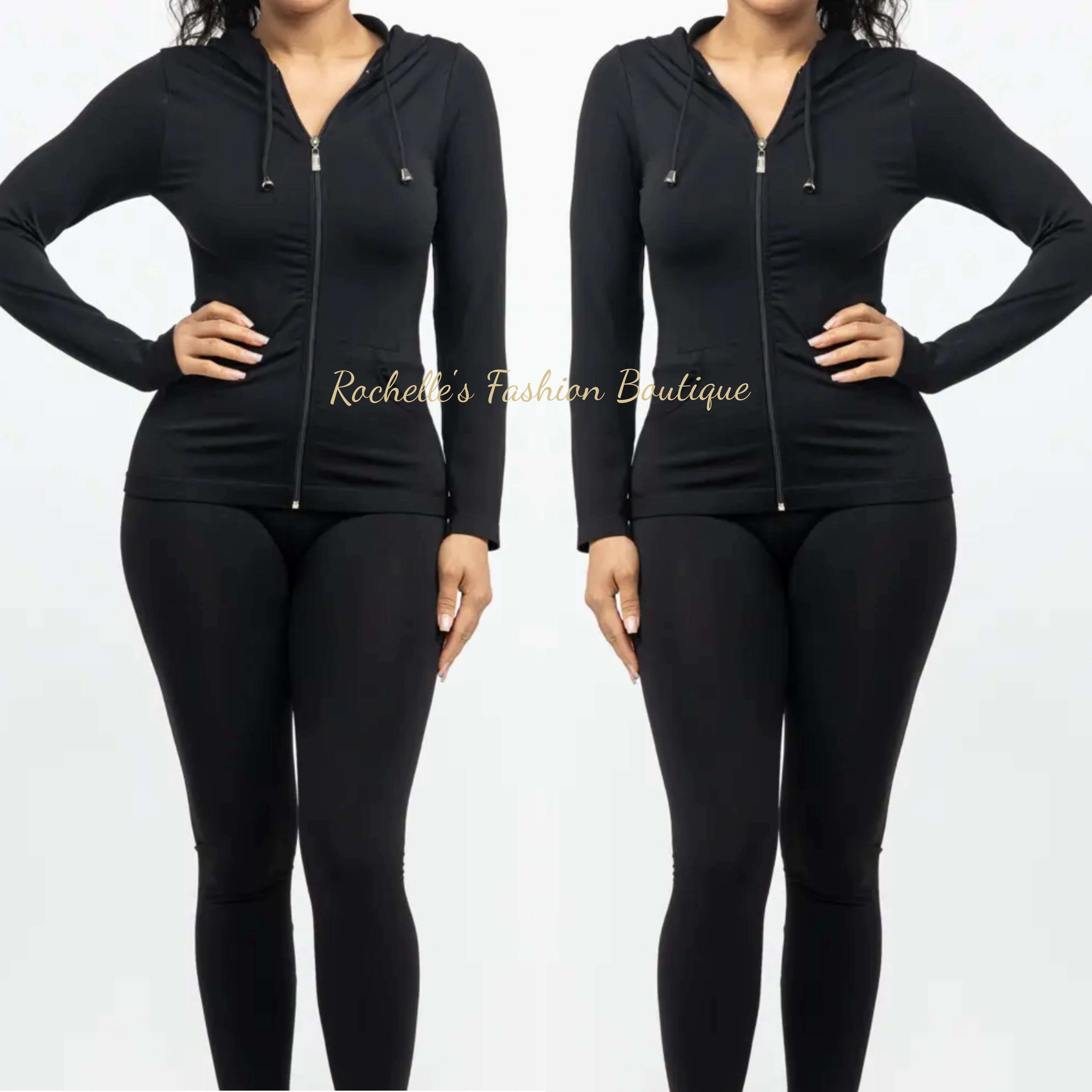 BLACK ZIP UP FRONT HOODIES AND LEGGINGS SET
